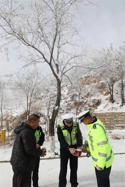 在巡邏途中,民輔警發(fā)現(xiàn)部分車輛滯留在路上。他們?yōu)闇赳{乘人員送上泡面等物資,讓各位駕乘人員感受到了延長(zhǎng)公安交警的濃濃暖意,舒緩駕乘人員旅途滯留的焦慮情緒。同時(shí),民警提醒駕駛?cè)思皶r(shí)關(guān)注天氣情況和路況信息,確保行車安全。