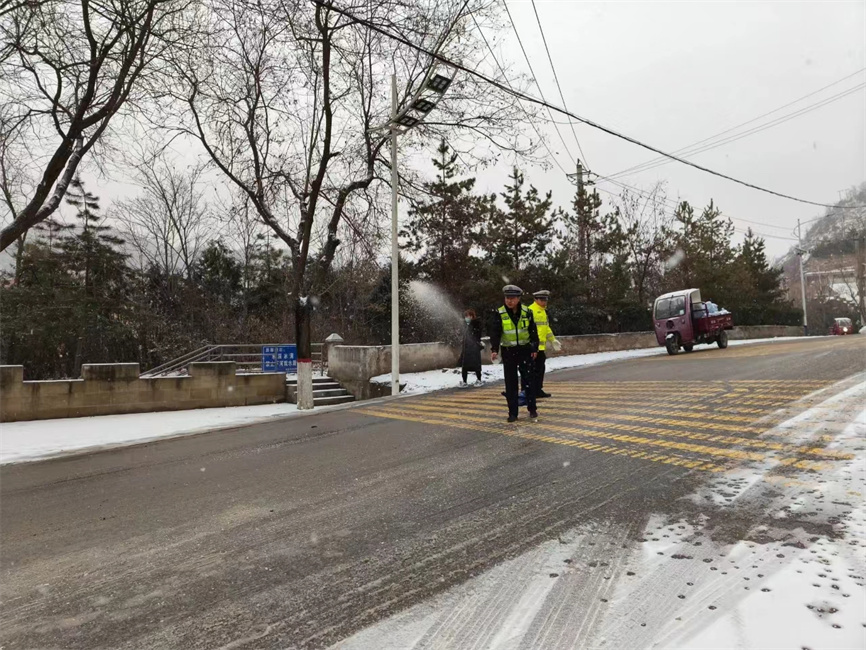 降雪天氣后,延長(zhǎng)公安交警強(qiáng)化源頭管控,采取警車巡邏、喊話提示、警燈警示等方式,加大巡邏頻率和巡邏密度,多舉措提高路面見警率、管事率,防止“小事故”造成“大擁堵”。同時(shí),通過(guò)短信、微信公眾號(hào)等廣泛發(fā)布轄區(qū)降雪情況和雪天駕車出行提示信息,切實(shí)消除道路交通安全隱患,全力以赴保障冰雪惡劣天氣下轄區(qū)道路安全暢通。
