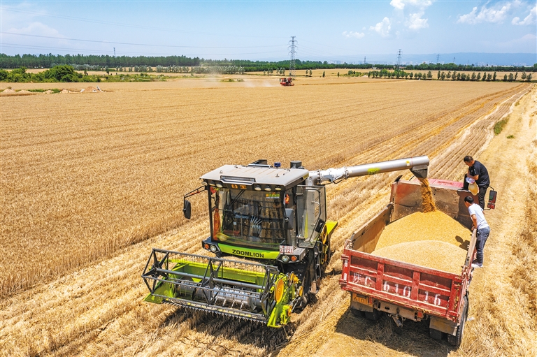 6月13日,寶雞市陳倉(cāng)區(qū)慕儀街道第三村村民在收獲小麥(資料照片)。