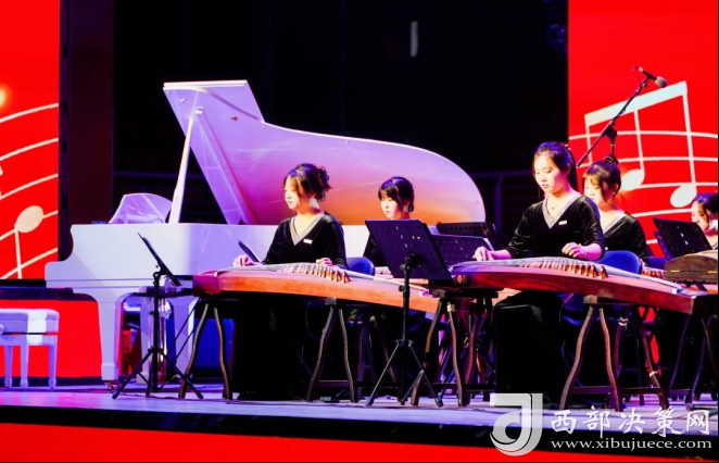 走進(jìn)音樂殿堂,聆聽悠揚(yáng)旋律,敞開動人心扉,種下新時代文明的“種子”。整場音樂會分為“國樂迎新年”“琴韻潤匠心”“弦歌啟新程”三個篇章,采用歌曲聯(lián)唱、情景表演唱、樂器演奏、歌舞等多種藝術(shù)形式,以音樂的方式,唱響文明風(fēng)尚、展現(xiàn)人文風(fēng)貌、歌唱時代心聲、闡釋最美情懷。參演院校師生和寶雞教師合唱團(tuán)傾情演繹《長相知》《陽關(guān)三疊》《瑤族舞曲》《我和我的祖國》等經(jīng)典曲目,從婉轉(zhuǎn)歌喉到歡快勁舞,以青春風(fēng)采點(diǎn)燃現(xiàn)場師生的熱情,將現(xiàn)場氛圍推向一個又一個高潮。最終,這場承載著大家美好新年祝愿的音樂會在經(jīng)久不息的掌聲中落下帷幕。
