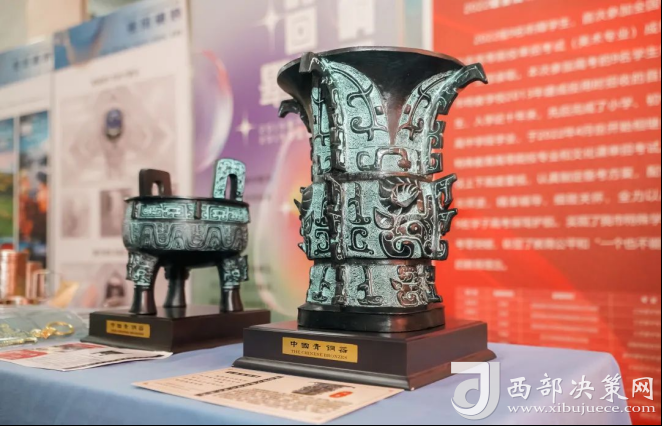 青銅器里見“匠心”,文明之光耀未來。在青銅文化展區(qū),寶雞市特殊教育學校現(xiàn)場展示了形式多樣、制作精美、獨樹一幟的師生美術、手工作品百余件,既有嚴謹的素描、水粉,也有孩子們精心制作的妙趣橫生的衍紙畫、絨線編織、陶藝作品、箔藝作品等創(chuàng)意美工,特別是利用超輕泥、廢舊紙箱、易拉罐仿制的青銅器,形象逼真,栩栩如生,彰顯了周風秦韻、青銅古趣,讓觀展嘉賓、師生陣陣驚嘆,紛紛為該校學生點贊。