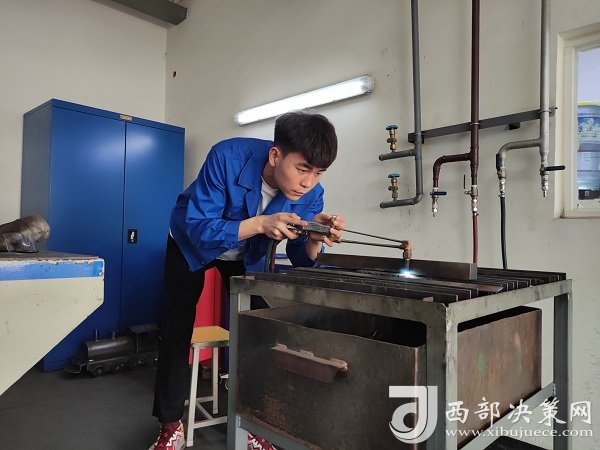 見到黨金鑫時,他正在實訓(xùn)車間緊張忙碌地備戰(zhàn)著第二屆全國職業(yè)技能大賽(世賽選拔賽),作為助教,他還同時肩負著帶領(lǐng)學生、傳授經(jīng)驗的任務(wù)??赡苓B他自己都沒想到,在這所實訓(xùn)車間內(nèi),他能將自己的才華施展得淋漓盡致,靠著一門技術(shù)實現(xiàn)了“一飛沖天”。