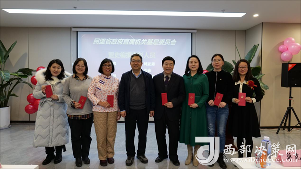民盟省政府委員會(huì)表彰的《民盟陜西省政府直屬機(jī)關(guān)基層委員會(huì)簡(jiǎn)史》編撰人員與領(lǐng)導(dǎo)合影