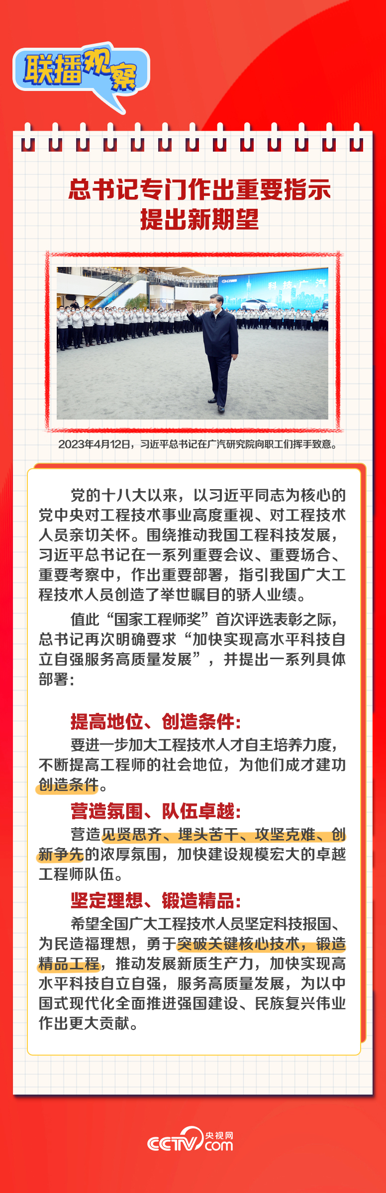 總書記對全國廣大工程技術(shù)人員提出哪些希望?獲獎?wù)吆瞳@獎團(tuán)隊因何上榜?“國家工程師獎”獎?wù)录?xì)節(jié)中藏著哪些奧秘?央視網(wǎng)《聯(lián)播觀察》帶您讀懂國家最高規(guī)格表彰工程技術(shù)領(lǐng)域先進(jìn)典型背后的深意。