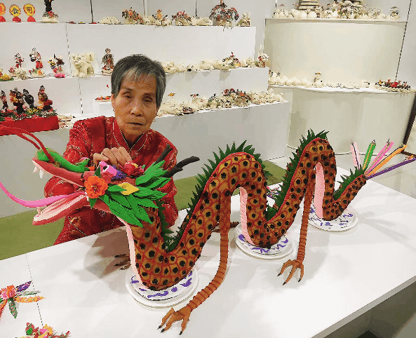 揉、捏、揪、挑、壓、搓、撥、按......在黃陵手藝人的巧手中擺弄幾番,一個(gè)憨態(tài)可掬的“二龍戲珠”花饃立時(shí)活靈活現(xiàn)躍入眼簾。