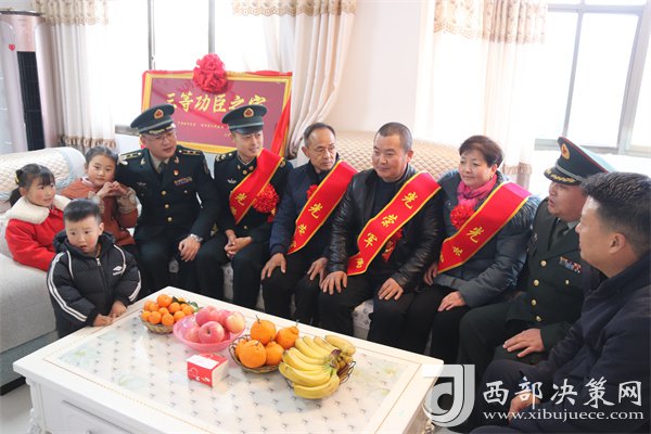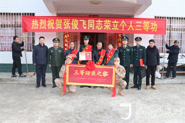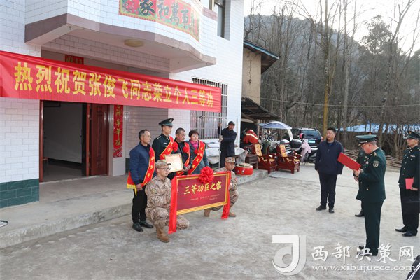 西部決策網(wǎng)訊 律回歲晚,年味漸濃。在陜西省漢中市略陽縣徐家坪鎮(zhèn)小山村張家莊,幾位身著軍裝的軍人手捧喜報(bào),抬著三等功臣之家的牌匾,在人群中格外的顯眼。由縣人武部,退役軍人事務(wù)局,鎮(zhèn)村領(lǐng)導(dǎo)組成的隊(duì)伍帶著新年的問候和祝福,為榮獲三等功的張俊飛家庭送來立功喜報(bào)、三等功臣之家的牌匾和慰問金,張俊飛所在的部隊(duì),委派專人到地方上聯(lián)合當(dāng)?shù)夭块T將這份殊榮親自送到張俊飛的家里,給小山村增添無限的喜慶和榮光。