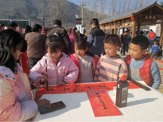 一個(gè)個(gè)形態(tài)各異的“福”字、一副副飽含墨香、寓意滿滿的春聯(lián),既有辭舊迎新的美好愿景,也有聽黨話、頌黨恩、跟黨走的堅(jiān)定信念。看著寫滿祝福的春聯(lián),群眾連聲道謝。“手寫的春聯(lián)更接地氣、更有年味,貼著更有意義!”大莊村村民李建平說。