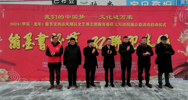 西部決策網(wǎng)訊(記者劉玉 韓宗憲 通訊員 閆芝羽)2月2日,“我們的中國(guó)夢(mèng)·文化進(jìn)萬(wàn)家”——2024春節(jié)寶雞市鳳翔區(qū)文藝界志愿服務(wù)春聯(lián)義寫送祝福公益活動(dòng)啟動(dòng)儀式在區(qū)政府大門西側(cè)廣場(chǎng)舉行,區(qū)委常委、宣傳部部長(zhǎng)賈亞斌出席活動(dòng)啟動(dòng)儀式。