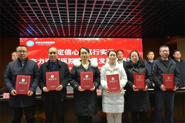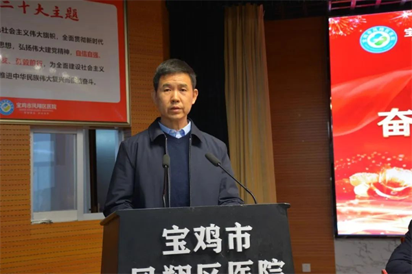 鳳翔區(qū)衛(wèi)健局黨組書記、局長張建峰對2023年醫(yī)院的學科建設、三級醫(yī)院創(chuàng)建、醫(yī)療服務能力提升、醫(yī)院綜合管理、重點項目建設等工作成績給予充分肯定和高度贊揚,并對醫(yī)院下一步發(fā)展提出了指導性意見。他指出,區(qū)醫(yī)院要緊扣中心工作,推動醫(yī)院各項事業(yè)高質(zhì)量發(fā)展,要抓好項目建設,在服務能力上實現(xiàn)新突破,要強化人才隊伍建設,激發(fā)職工干事創(chuàng)業(yè)激情,要鼓勵資源下沉,助推緊密型醫(yī)共體建設。希望鳳翔區(qū)醫(yī)院全體干部職工同心同德,砥礪奮進,為推動鳳翔衛(wèi)生健康事業(yè)高質(zhì)量發(fā)展再做貢獻、再立新功。