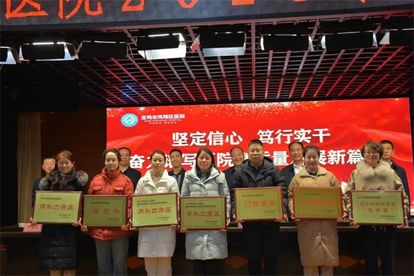 院長韋灝作了《鳳翔區(qū)醫(yī)院2023年工作總結(jié)暨2024年工作計劃》的報告,從醫(yī)療業(yè)務提升、重點項目建設、醫(yī)療服務環(huán)境改善、醫(yī)院綜合管理、黨建工作推進、平安醫(yī)院建設等六個方面進行了系統(tǒng)全面總結(jié),向獲得表彰獎勵先進科室及先進個人表示祝賀,并安排了2024年全年工作任務。