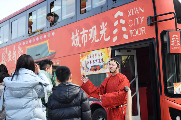“春節(jié)期間,我們共計25輛觀光車每天跑將近80班次,基本都是提前在線訂滿的狀態(tài)。”西安城市觀光汽車運營管理有限公司總經理助理董瑤告訴記者,這一旅游項目近兩年來累計接待游客50萬人次,開通運營城市觀光線路8條,在今年春節(jié)假期開行了龍年新春主題車、“長安尋夢”主題車、全國首輛唐詩主題車、秦腔主題車等10多個主題車輛,以滿足游客的多樣化需求。