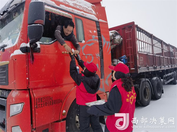 這有小米粥、炸油餅,雞蛋還熱乎著……”榆靖分公司志愿者暖心地喊著話。“行動是最好的破冰劑”,志愿者們?yōu)楦咚贉袈每退腿ナ澄?,頂風冒雪分發(fā)給滯留在收費站的司乘人員。一件件穿梭在寒風中的“紅馬甲”此刻成為了冬日里最美的“志愿紅”,讓群眾在寒意逼人的天氣里感受到了一份特別的溫暖。大家紛紛表示感謝,“熱粥、小菜、松軟的饅頭下肚,全身都熱乎了。”一名滯留司機真誠地感激道。
