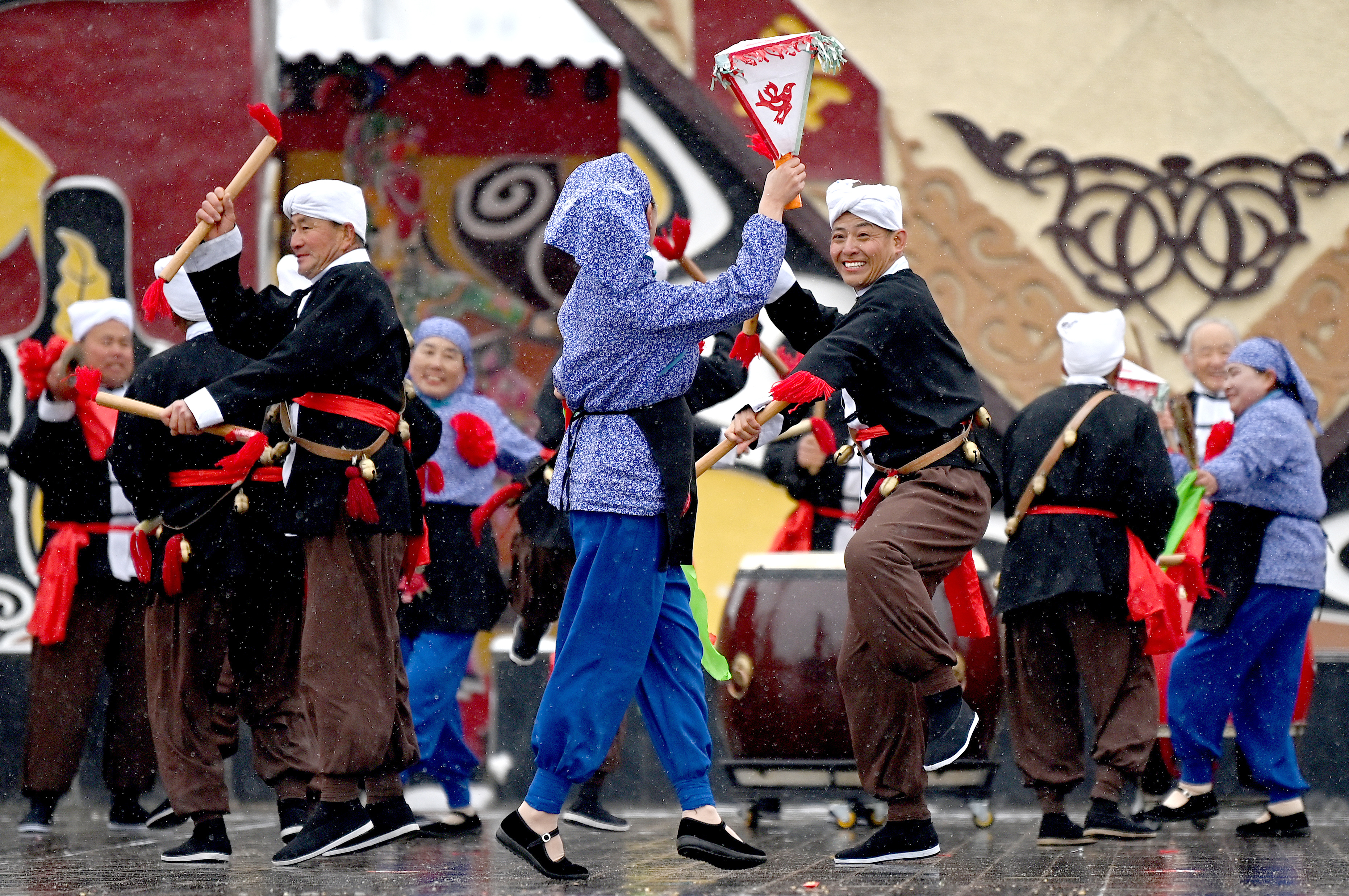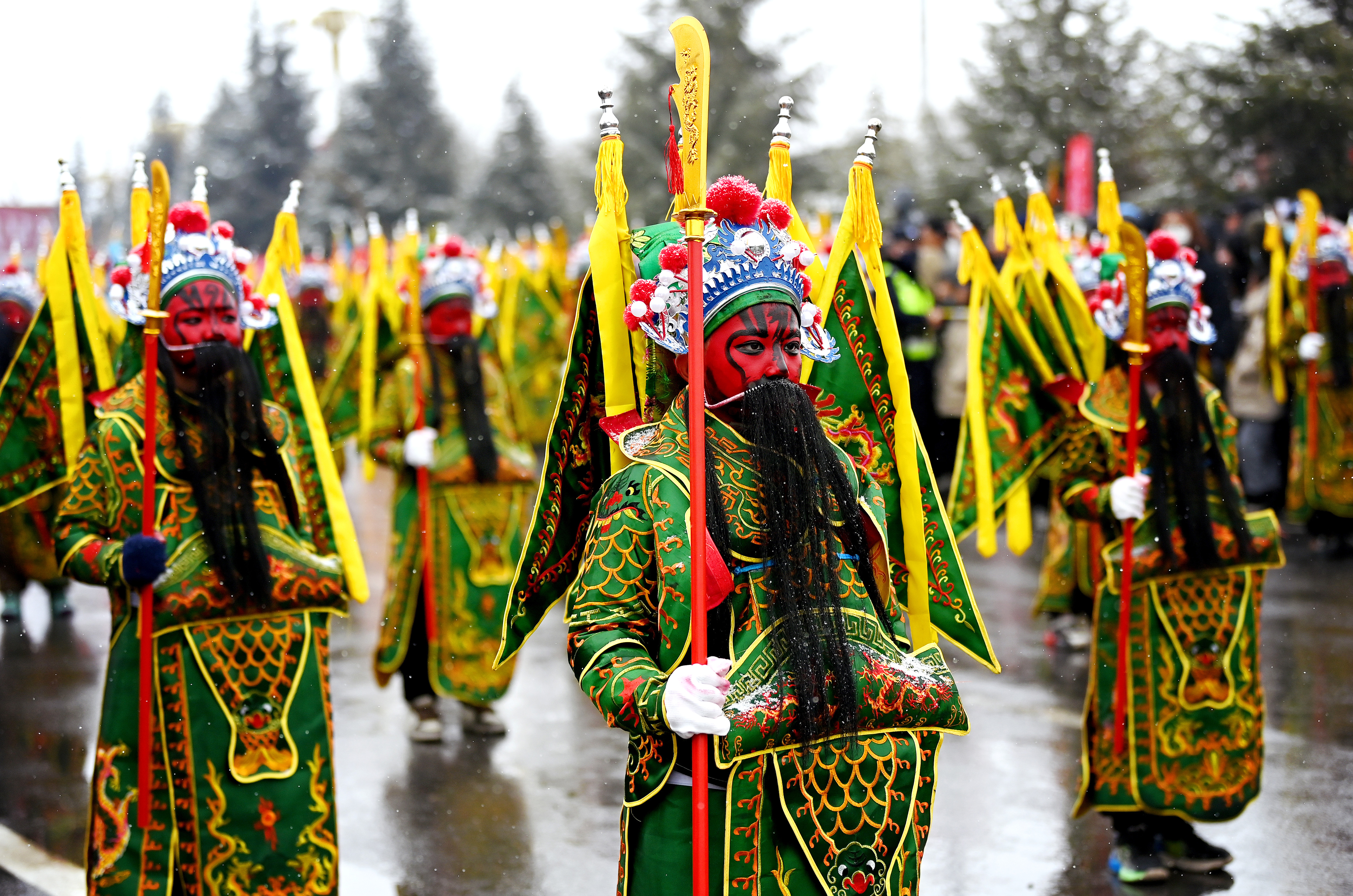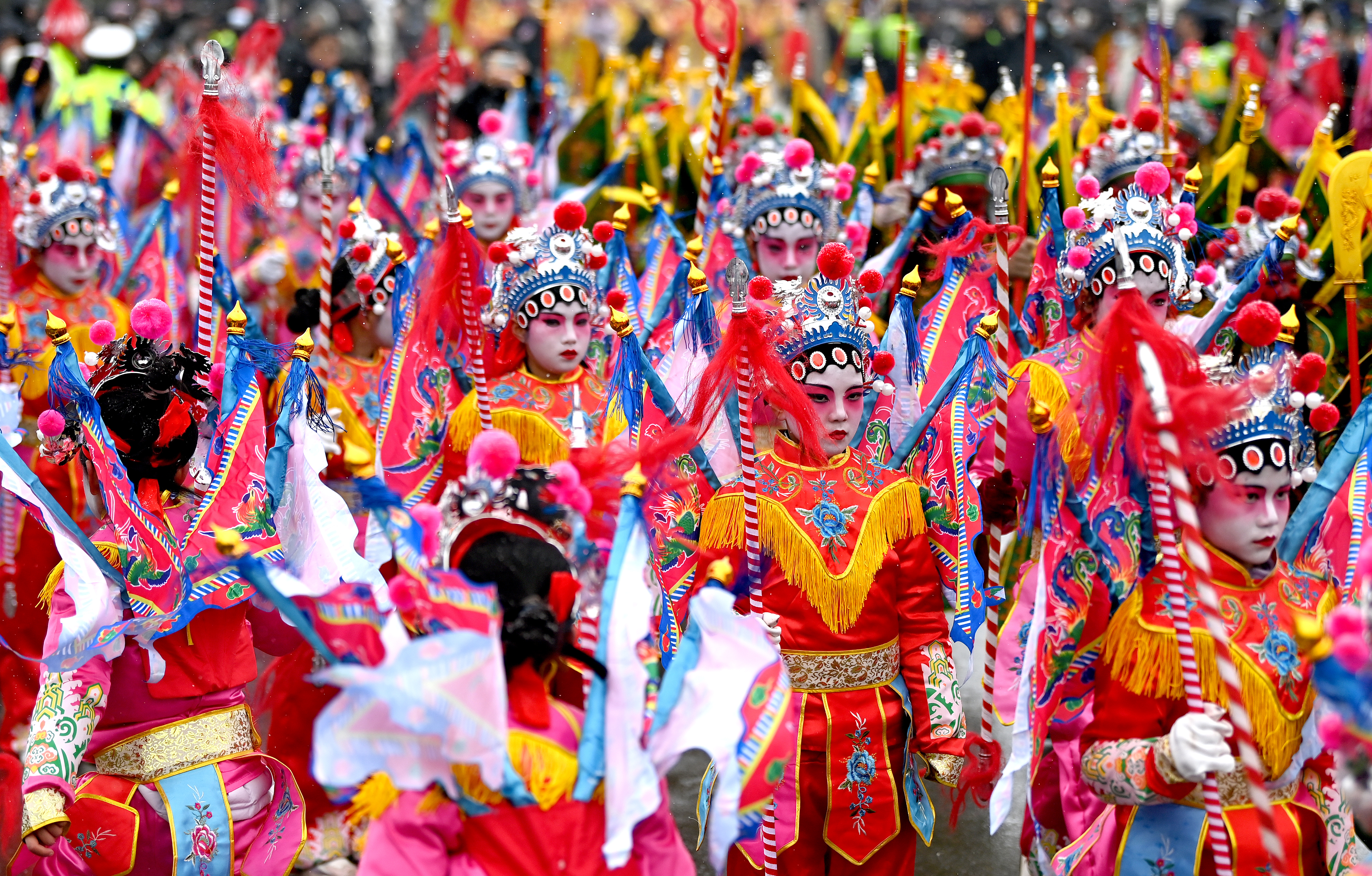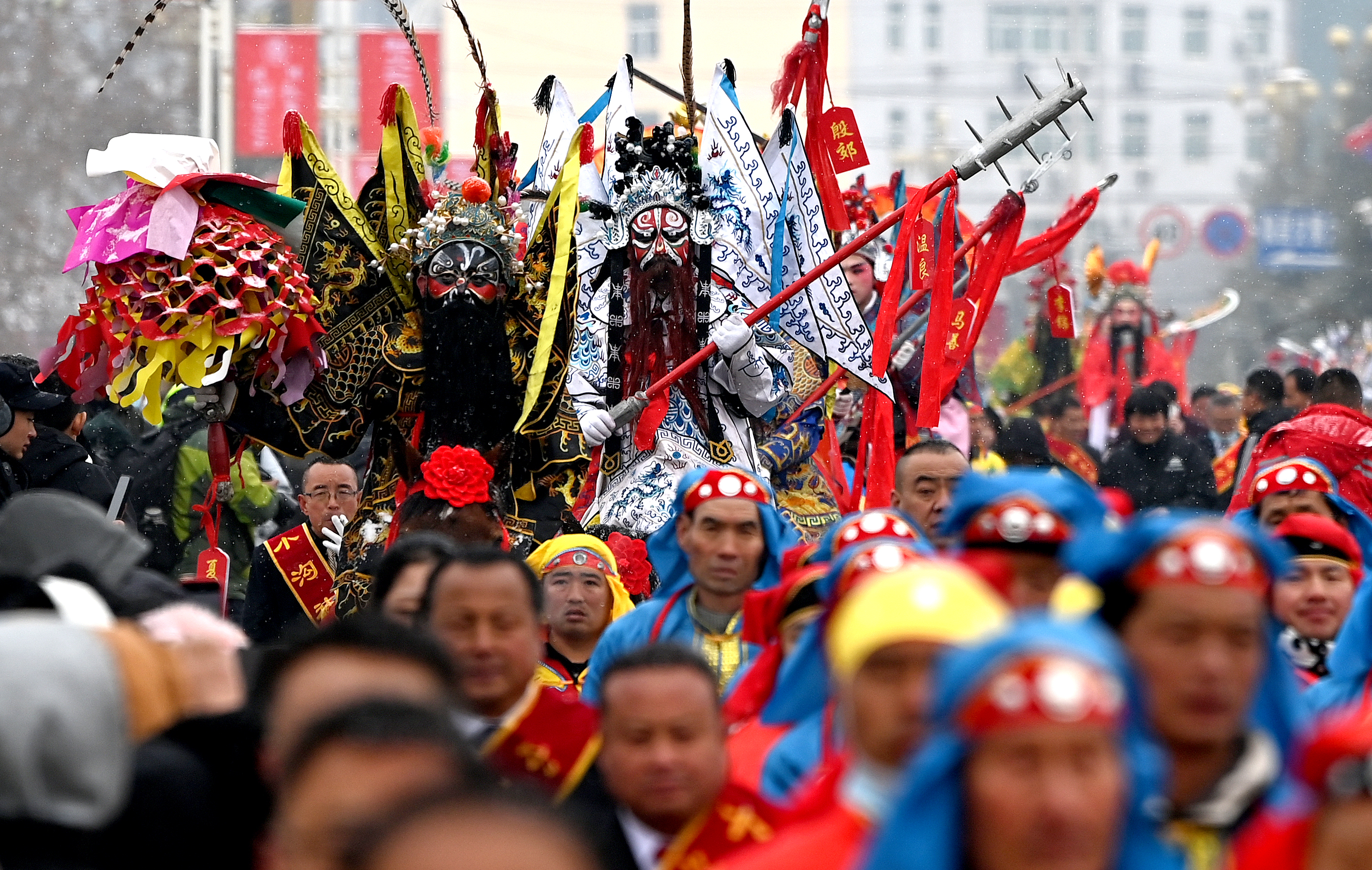 當(dāng)日是農(nóng)歷正月十三,來自陜西各地市的民間社火代表隊(duì)齊聚陜西隴縣,進(jìn)行社火展演及巡游活動(dòng)。在陜西,每年春節(jié)期間人們紛紛裝扮社火,走鄉(xiāng)串戶,進(jìn)行拜年迎春游演。