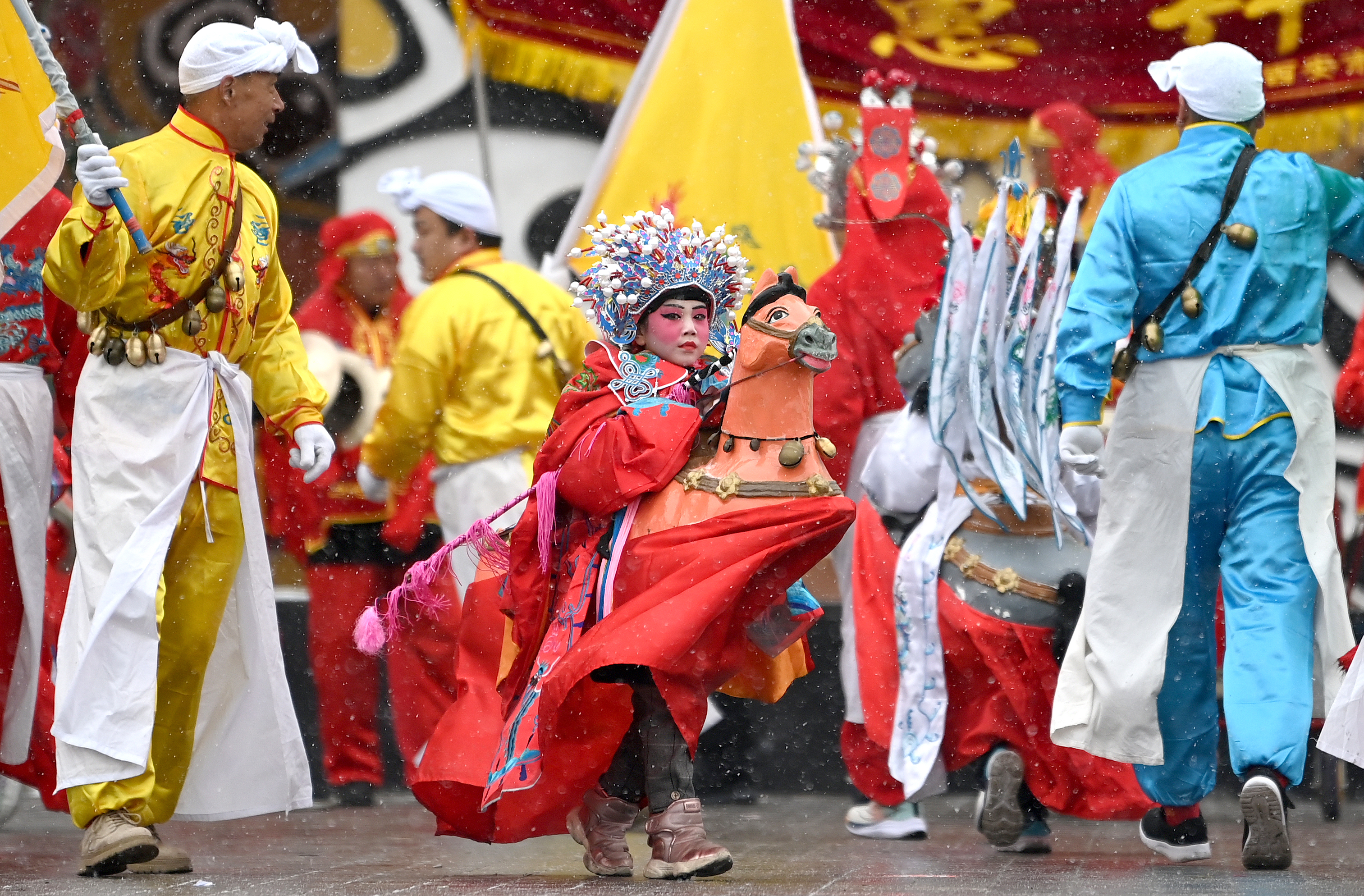 2月22日,在隴州社火過大年暨陜西省民間社火展演上,隴縣馬社火在進(jìn)行巡游。新華社記者劉瀟攝