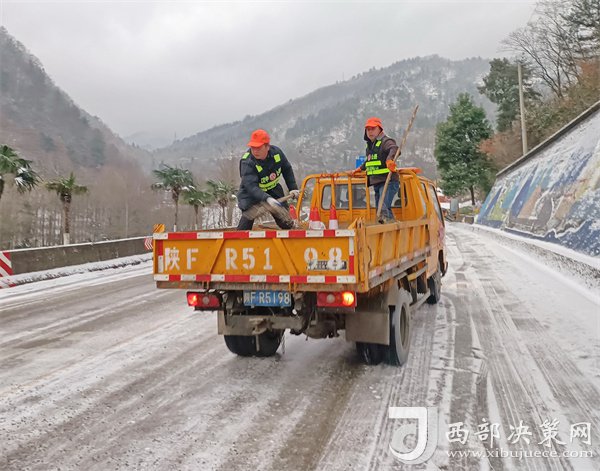 西部決策網(wǎng)訊 受強(qiáng)冷空氣影響,2月21日開始,寧強(qiáng)縣出現(xiàn)降雪天氣。根據(jù)氣象預(yù)警,寧強(qiáng)縣公路段提前組織好保暢人員和除雪機(jī)械,備好融雪劑、防滑料,隨時(shí)待命。雪情來臨后,寧強(qiáng)公路段以雪為令,聞雪而動(dòng),迅速啟動(dòng)應(yīng)急保暢預(yù)案,及時(shí)開展除雪保暢作業(yè),全力保障轄區(qū)108國道安全暢通。