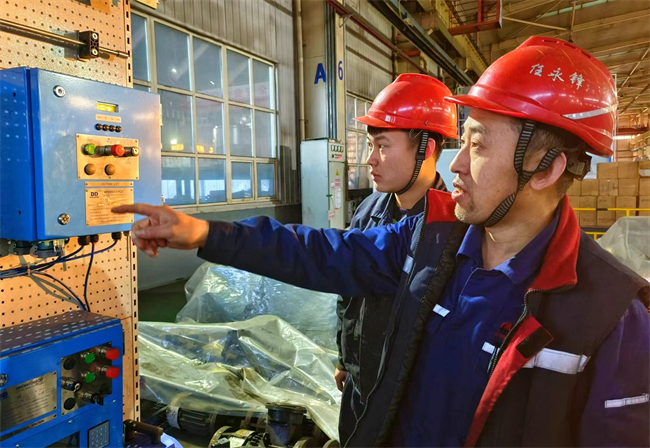除夕一大早,姜肖航就跟著師傅任永峰在車間內(nèi)檢修設(shè)備。