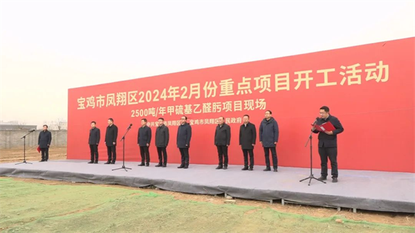 新年伊始,鳳翔區(qū)2024年2月份重點(diǎn)項(xiàng)目集中開工儀式在年產(chǎn)2500噸甲硫基乙醛肟項(xiàng)目現(xiàn)場(chǎng)舉行。總投資7.04億元,年度計(jì)劃投資1.74億元的甲硫基乙醛肟、乳化炸藥生產(chǎn)線局部安全技術(shù)升級(jí)改造、寶雞市公安局鳳翔分局石家營(yíng)派出所建設(shè)等11個(gè)重點(diǎn)項(xiàng)目集中開工。