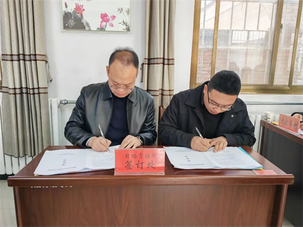 黨政主要領(lǐng)導(dǎo)與各村簽訂目標(biāo)責(zé)任書,將指標(biāo)轉(zhuǎn)化為工作目標(biāo),將壓力轉(zhuǎn)化為工作動(dòng)力,將責(zé)任轉(zhuǎn)化為工作使命,確保全年工作高線達(dá)標(biāo)。