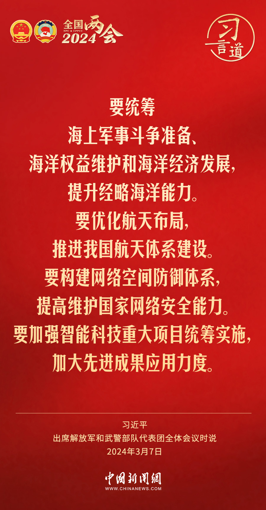 中共中央總書記、國家主席、中央軍委主席習近平7日下午出席十四屆全國人大二次會議解放軍和武警部隊代表團全體會議,習近平強調(diào)——