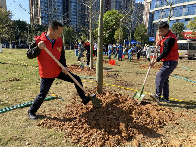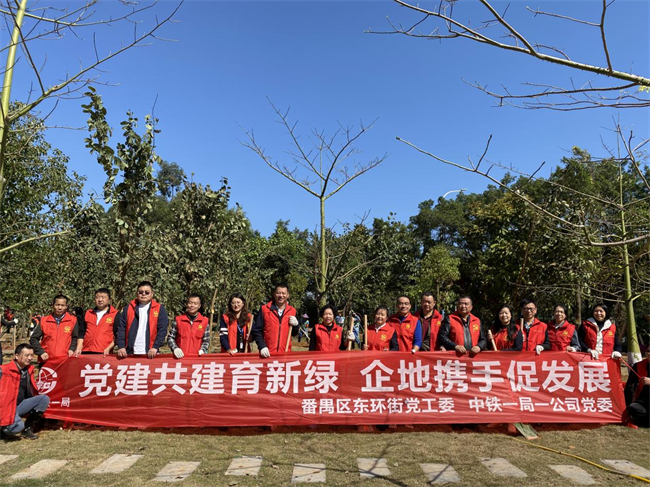 中鐵一局一公司黨委副書記、紀(jì)委書記朱懷勇帶隊,公司本部和番禺區(qū)在建項目的13名黨員代表參加了本次活動,他們統(tǒng)一著裝,手持鐵鍬、水桶等勞動工具,沐浴春日暖陽,滿懷熱情希望,認(rèn)領(lǐng)了10棵象征著堅韌、勇氣、智慧和興旺的銀杏和香樟,栽種下中鐵一局一公司在廣東番禺屬地化發(fā)展的夢想和希望。