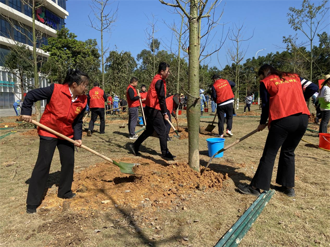 西部決策網(wǎng)訊 3月12日,第46個植樹節(jié)上午,中鐵一局一公司黨委與廣州市番禺區(qū)黨工委聯(lián)合開展“共建育新綠,攜手促發(fā)展”義務(wù)植樹主題黨日活動,用實際行動深入貫徹習(xí)近平生態(tài)文明思想,牢固樹立和踐行綠水青山就是金山銀山的理念,推進綠美廣東生態(tài)建設(shè),助推廣東高質(zhì)量發(fā)展。