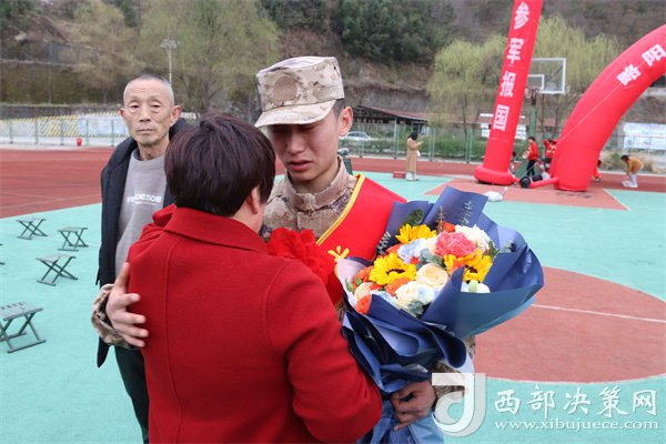 臨別寄語,笑中帶淚,互道珍重萬千;折柳相送,別情依依,男兒志存高遠。隆重的儀式,歡快的樂章,為家鄉(xiāng)子弟兵壯行。歡送現(xiàn)場,親屬們手捧鮮花和祝福相贈。“表弟加油,我在部隊等你。”新兵董一凡與表哥互敬軍禮。新兵高英杰強顏歡笑吃完母親為他包的最愛吃的餃子,給母親一個擁抱,讓父母放心。相望凝噎,女友深情為他整理胸前的紅花和綬帶,新兵陳佳磊對戀人說道:“將來軍功章有我的一半,也有你的一半”。熱血男兒們帶著親人的祝福,和對軍營的向往,即將踏上征程,開啟他們無悔的軍旅人生。(供稿:王鵬 侯小平)