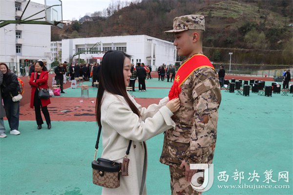 歡送大會在雄壯的國歌聲中拉開帷幕,縣人武部副部長宣讀新兵服役去向,縣退役軍人事務局副局長為新兵及家長解讀軍人優(yōu)撫優(yōu)待政策??h人武部政委作動員講話,對大家給予厚望:要做父母放心的好兒子,要當人民軍隊的好戰(zhàn)士,要樹“略陽兵”的好形象。與會領導為全體新兵佩戴“光榮入伍”綬帶和紅花,縣雙擁辦為新兵們贈送行李箱等紀念品。新兵們胸戴紅花、身披綬帶,精神抖擻、斗志昂揚,展現(xiàn)出新時代有志青年參軍報國、矢志軍營建功立業(yè)的高尚情懷。