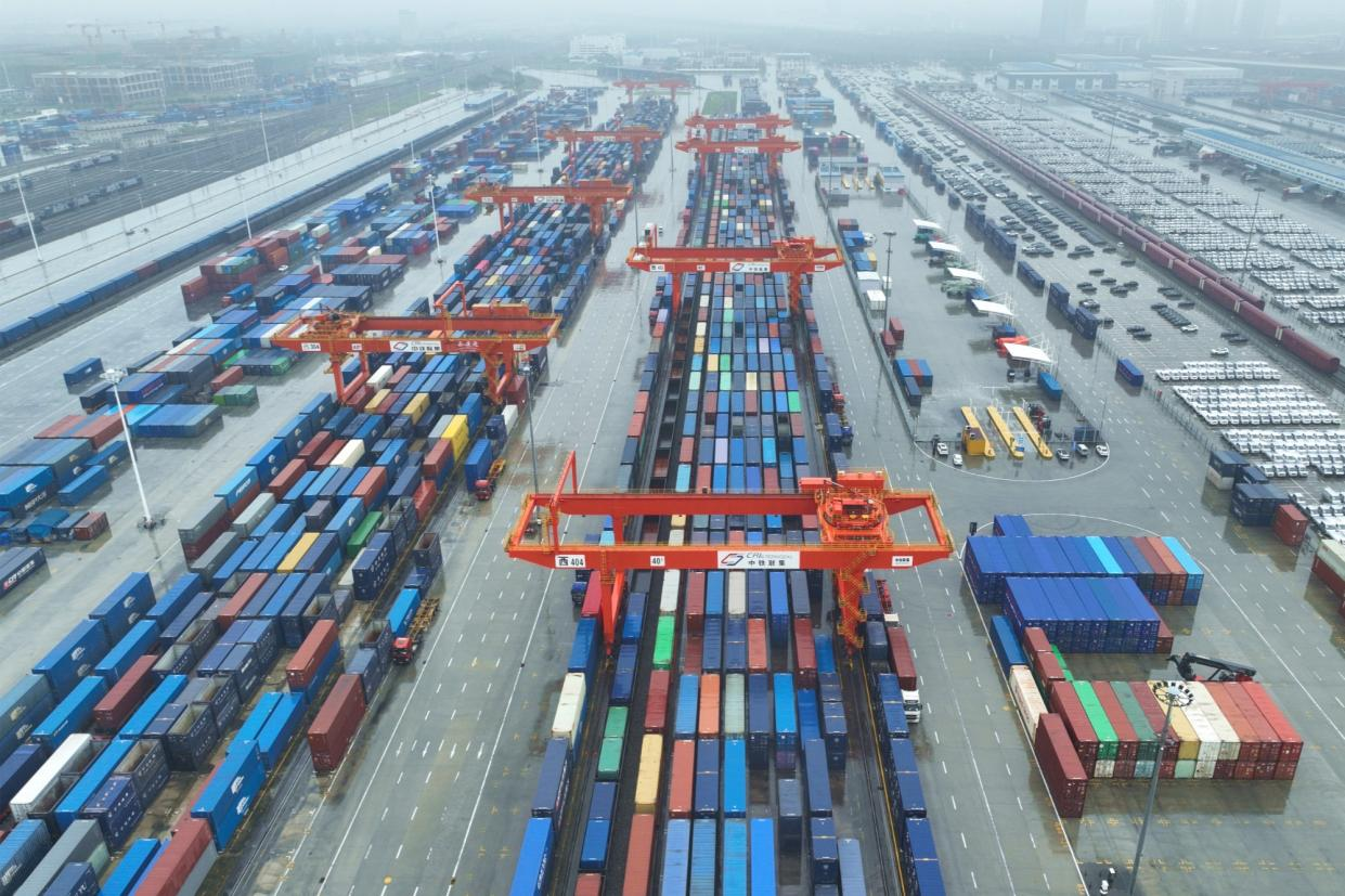 在西安國際港站,一排排集裝箱疊放整齊(央廣網(wǎng)發(fā) 滕秦溥 攝)